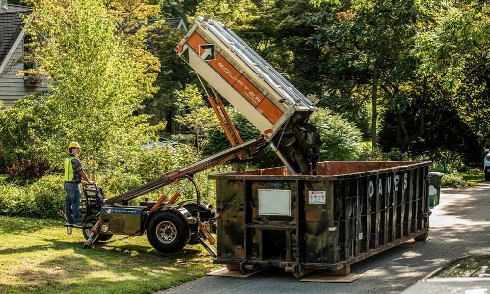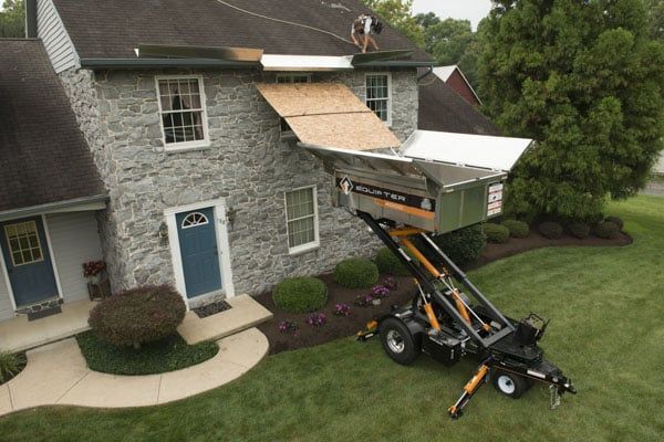Job Sites. This powerful self-propelled dump trailer raises up to catch the old shingles before they even have a chance of snapping branches off your shrubs or knocking buds off your favorite flowers.